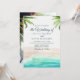 Watercolor Beach and Palm Trees Photo Wedding Invitation