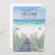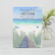 This beautiful Save the Date features an elegant watercolor scene of a wooden beach pier leading down to turquoise waters. Ideal for an elegant beach wedding.