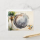 Watercolor beach save the date card with flip flops and a palm trees. Add a photo of the couple!