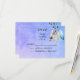 A watercolor wedding rsvp. A watercolor design with four soft delicate looking feathers beaded together hanging down from the top border. The background is a soft purple blue watercolor texture. A bobo hippy tribal motif with a native american feel.