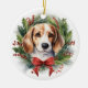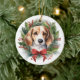 Watercolor Beagle Red Bow Wreath Christmas Ceramic Ornament