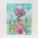 Watercolor Beautiful Brown Little Mermaid jigsaw puzzle. To personalize, type the text in places of the sample in the edit field above at right. You can also change the typeface and font colour and size if you wish.