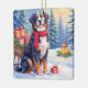 Watercolor Bernese Mountain Dog Sleigh Christmas Ceramic Ornament