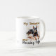 Watercolor Blacks and Browns DOBERMAN and Morning Coffee mug. A strikingly beautiful dog breed, a loving companion, loyal friend and morning coffee. IT IS WHAT IT IS! Just a breath taking moment of time, as the business of the day begins. This Mug comes with stylish print and Elegant Script title, ''My Doberman and Morning Coffee''., A strong Watercolor Image of A DOBERMAN In all its Natural BEAUTY.
