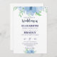 Watercolor Bloom Greenery Dusty Navy Blue Wedding Invitation