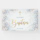 Elegant blue and gold boy Baptism Welcome sign. Design featuring glitter confetti background, gold cross and typography script ''Baptism''. Click customize further to edit /modify this template.
