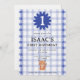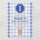 Perfect for baby's first birthday, this invite features an adorable tiger with a charming watercolor check background.