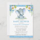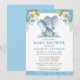 Watercolor Blue Floral Elephant Shower Glitter Invitation