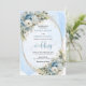 Set the tone for an unforgettable celebration with this elegant watercolor wedding invitation, beautifully designed with dusty blue florals, soft white peonies, and delicate eucalyptus