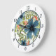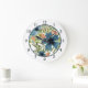 Here's a pretty floral clock image that is appropriate for any season. Pale blue flowers have deep blue centres and are beautifully paired with soft coral pink berries and green leaves. A circular matching blue frame separates the numbers from the watercolor floral images, and everything is placed on a white background. Pretty for any room in the house.