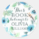 Customize this lovely feminine This Book Belongs To Sticker featuring an original watercolor floral wreath of lovely blue flowers on a white background.