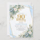 Watercolor Blue Gold Glow 90th Birthday Invitation