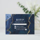 Modern Elegant Watercolor Blue and Gold Marble Agate Geode Wedding RSVP Card