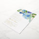 Invite guests to your event with this customizable gold foil pressed baby shower brunch invitation. It features watercolor bouquet of blue hydrangeas, white roses and greenery accents. Personalize this hydrangea baby brunch invitation by adding name, time, date and other event details. This botanical baby brunch invitation is perfect for spring baby showers, winter baby showers and It's a Boy baby shower. This gold foil baby shower is available in other foil colours.