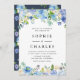 Watercolor Blue Hydrangea Floral Garland Wedding Invitation