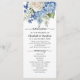 Watercolor Blue Hydrangea White Roses Wedding Program