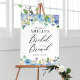 Welcome guests to your event with this customizable bridal brunch welcome sign. It features a floral garland of blue and ivory hydrangeas, roses, and anemones. Personalize by adding your details. This hydrangea bridal brunch welcome sign is perfect for spring and winter baby showers.