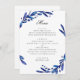 Watercolor blue navy floral foliage winter wedding menu
