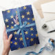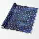 Watercolor Blue Pattern with Gold Stars Wrapping Paper