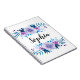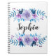 Notebook with romantic blue & purple watercolor floral wreath design and customizable name or monogram.