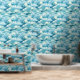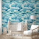 Watercolor Blue White Abstract Sea Waves Coastal Wallpaper
