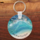 Watercolor Blue White Ocean Wave Custom Photo Name Keychain