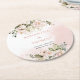 Watercolor Blush roses eucalyptus gold wedding Round Paper Coaster