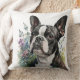 WATERCOLOR BOSTON TERRIER DOG WITH FLOWERS THROW PILLOW