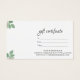 Watercolor Botanical Leaves Branch Foliage Gift Certificate Card.