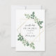 An elegant wedding r.s.v.p. invitation featuring a watercolor inspired botanical greenery design around a geometric frame with black text.