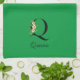 Watercolor botanical green initial monogram kitchen towel