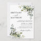 Modern Elegant Watercolor Botanical Greenery Wedding Invitation Card includes eucalyptus leaves, green botanical foliage, dusty blue leaves, sage green leaves and other beautiful botanical greenery. Calligraphy Script. Photo Back.