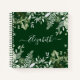 Watercolor Botanical Greenery Notebook includes ivy, fern and sage leaves. Your Name in a stylish script. Forest Green background.