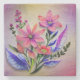 A Watercolor Gouache Bouquet flowers with textures, framed in gold, set against a beautiful colourful backdrop.