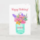 Colourful Birthday card, with a watercolor style floral arrangement in a green jar. Place the Birthday Girl's name on the jar, for an extra special touch.