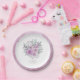 This striking paper plate will add a touch of romance to your table on your special day. This design with it's watercolor bouquet in soft pastels from lilac to orchid pink and a narrow border in matching lilac will make a delightful addition to your wedding decor. Add your names along with your wedding date for the final touch. Search ID654 to see the complete matching wedding set.