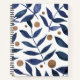 Watercolor branches and berries with indigo and beige motifs. Botanical illustration on notebooks.