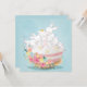 Sweet watercolor white bunnies in a pink striped Easter egg with flowers.