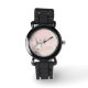 Cute kid's watch with a watercolor bunny rabbit peeking around the corner and a pink and grey watercolor background. Change the words "Do you know what time it is?" to a name or pick another word or phrase.