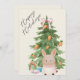 Watercolor Bunny Tree Pet Lover Christmas Flat Holiday Card