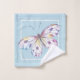 A simple light blue wavy pattern with lovely watercolor purple and blue butterflies. Give your bathroom a fresh spring look of simple elegance with matching shower curtain and accessories.