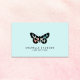Elegant and pretty business cards with an aqua blue and pink watercolor butterfly design on a mint green background. Created for estheticians, spas, cosmetologists, hair stylists, massage therapists and yoga instructors.