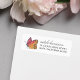 Elegant yet whimsical white return address labels feature a watercolor butterfly in vibrant shades of goldenrod and soft red, alongside your address details in charcoal grey block and script lettering. Coordinates with our Watercolor Butterfly bridal shower invitations and accessories.