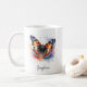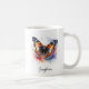 The bold orange bands and velvet-like wings of the Red Admiral butterfly are a highlight of the summer garden. This mug features an illustration of this beautiful butterfly in a watercolor style, with delicate detailing and soft, atmospheric color washes. Personalized with a name in elegant script, the butterfly mug makes an ideal gift for a nature enthusiast.