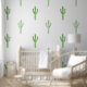 A minimalist watercolor cactus vinyl wallpaper. This modern cactus pattern features hand painted saguaro cactus and a white background. Simple and chic for desert themed home decor.