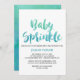 This watercolor calligraphy baby sprinkle invitation card is perfect for a summer boys baby shower. The fun and energetic design features a pretty teal green and aqua blue ombre watercolor script font.