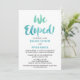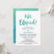 This watercolor calligraphy beach elopement reception invitation card is perfect for a tropical destination theme elopement party. The fun and energetic design features a pretty teal green and aqua blue ombre watercolor script font. Matching RSVP cards are sold separately.