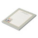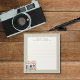 Capture your thoughts and creativity with this beautifully designed notepad, featuring a delicate watercolor illustration of a vintage camera surrounded by flowers with soft hues. This charming combination of art and functionality is perfect for photographers, artists, or anyone who loves to jot down notes in style. Each page offers plenty of room for ideas, to-do lists, notes, reminders etc. Compact and portable, it's the ideal companion for your desk, bag, or workspace. The text on the notepad is customizable and can be easily personalized to suit your needs.