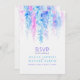 Loose cascading vine flowers modern botanica watercolor painting art wedding RSVP invitations. Beautiful floral art design ideal in pretty shades of purple, aqua blue and pink on white. © Original watercolor art and design by Sarah Trett www.sarahtrett.com for www.mylittleedenweddings.com