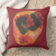 Watercolor Cherry and Green prickly pears Cactus Painting against burgundy background Throw Pillow.